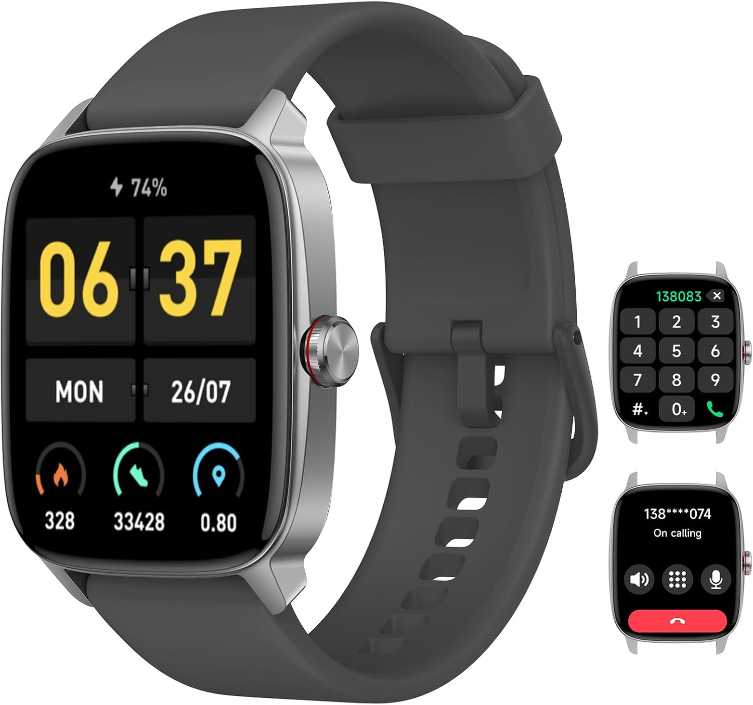 Smart Watch with Bluetooth 5.3 Calling & AI Voice: KIBFLE smart watch for men women has a built-in microphone and speaker, which use Bluetooth 5.3 for stable. This smartwatch can make/receive calls, store contacts, and review call history directly on your wrist. With the bulit-in AI voice assistant, you can give commands to “Siri” or “Google Assistant” from the watch, wake up your phone’s voice assistant to make a call, control music or check real-time weather conditions, etc