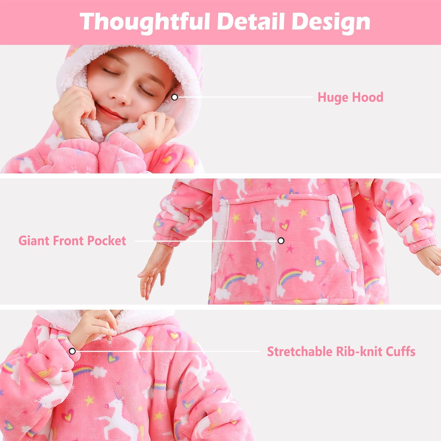 đăPerfect Gift ChoiceăOur sherpa blanket hoodie is the perfect gift for your kids on birthday, Children’s Day, Easter, Halloween, Thanksgiving, Christmas, New Yearâs Eve etc.