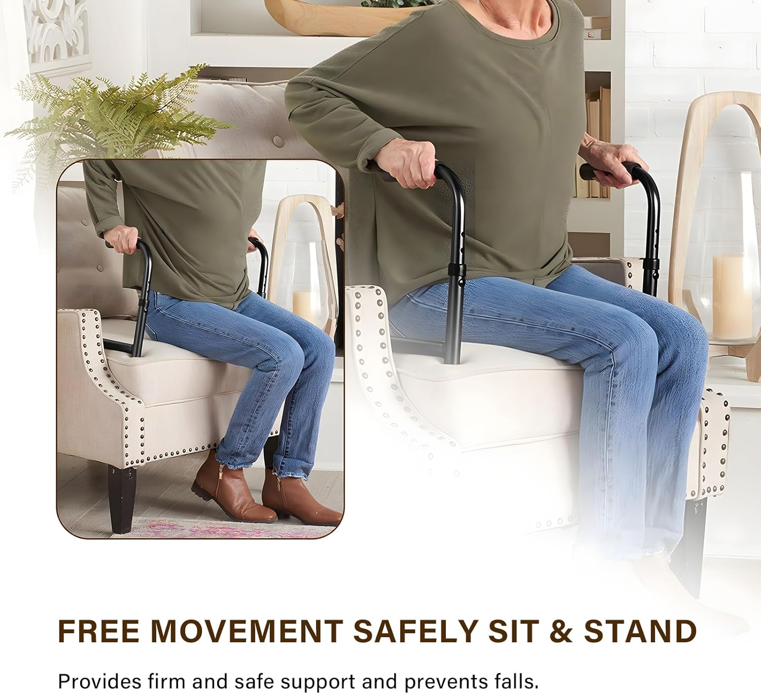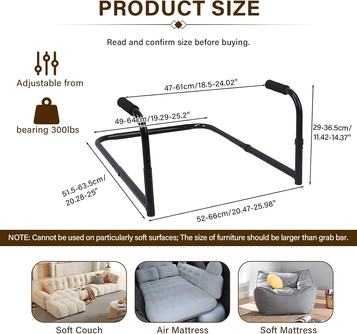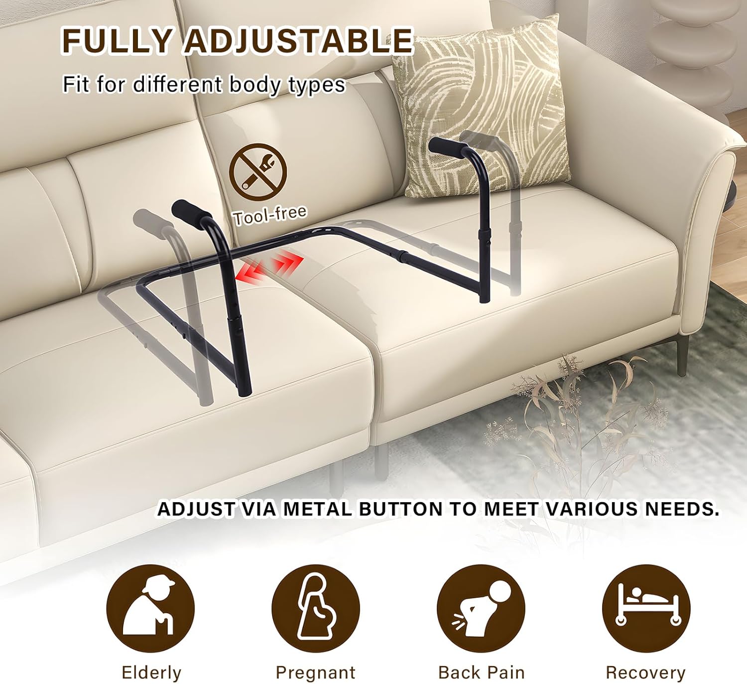 【Simple Installation for Any Cushioned Seat】The adjustable stand assist frame fits securely around the base of cushioned seats, including plush sofas and recliners, and can be tucked under loose cushions, making it compatible with most home furniture.