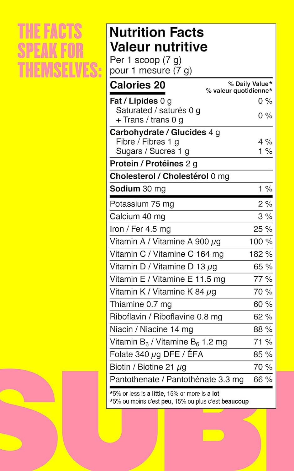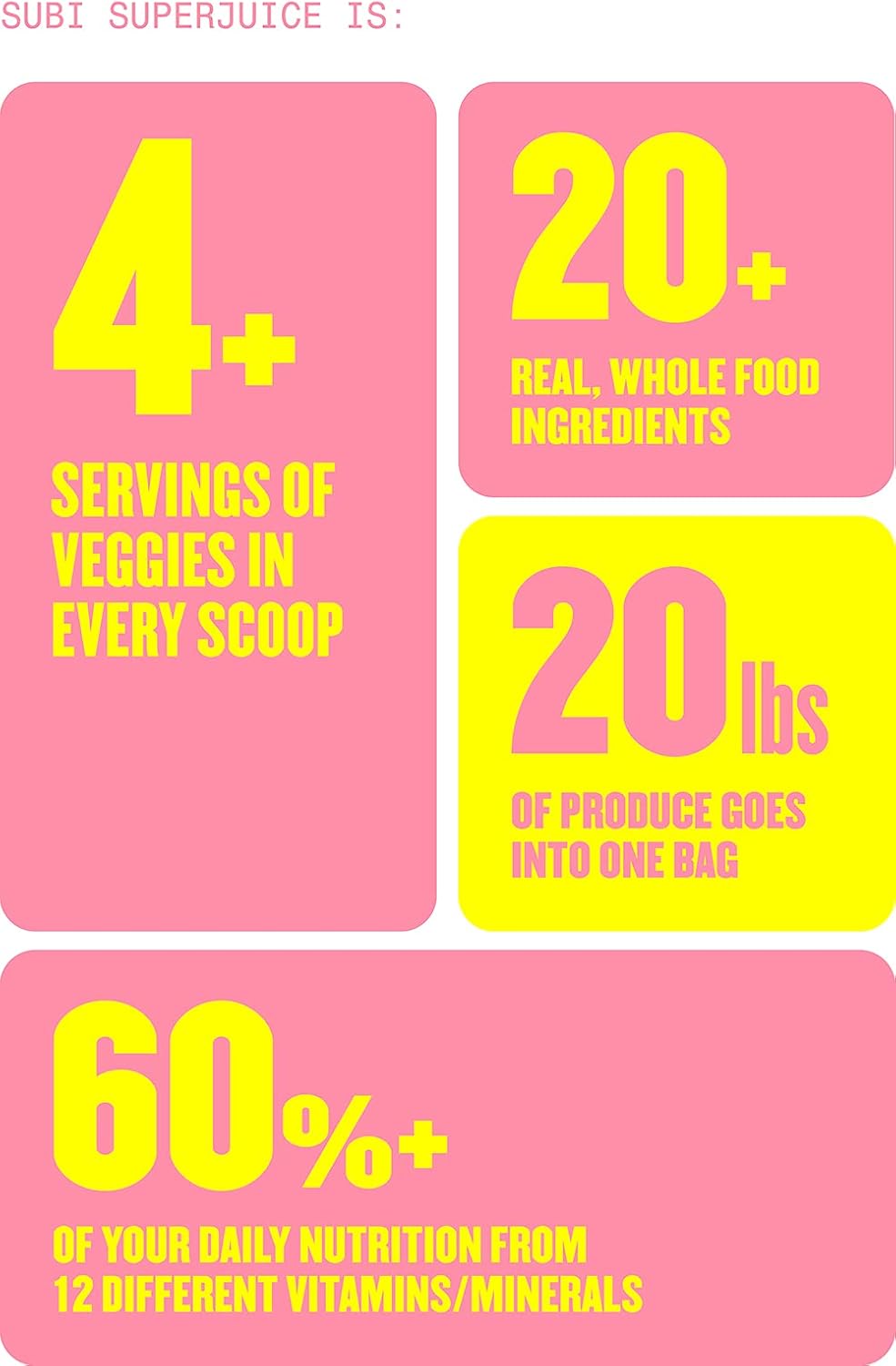 We try our best to fuel our bodies with leafy greens and nutrition that comes from all-natural sources, but sometimes life just gets in the way. We made Subi so that natural nutrition could be convenient and accessible to everyone. A serving of Subi in the morning provides you with 4 servings of nutrient dense greens and >60% of your daily nutrition. There’s something freeing knowing that you started off your day covering most of your nutritional needs.