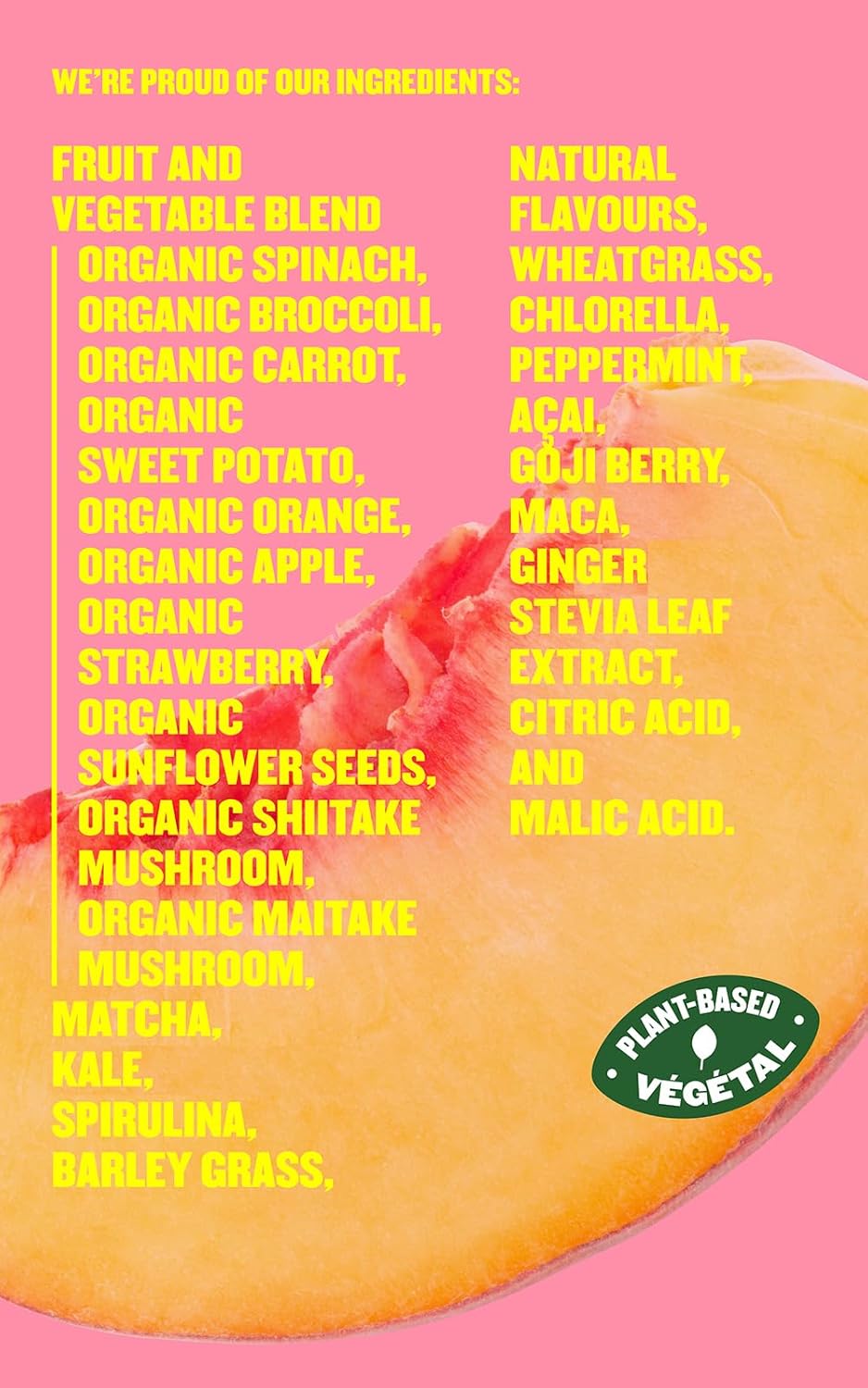 Green Superfood Blend: Made with nutrient-packed organic whole foods, including raw greens like spirulina, barley grass, chlorella, kale, spinach,sweet potato, mushrooms, broccoli, and fruits like acai and apple