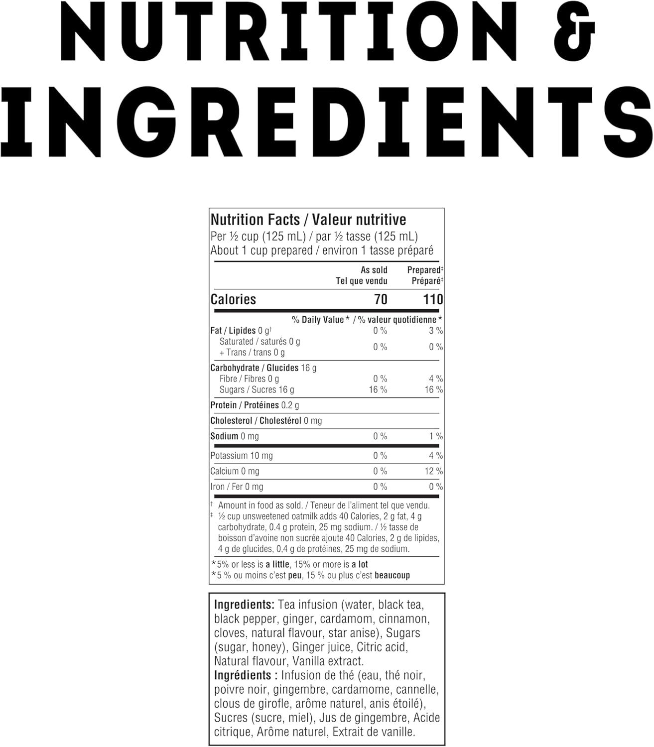 Chai concentrate is easy to blend into lattes: just add your favourite milk to the tea mix on a 1 to 1 ratio for the best at home chai latte experience