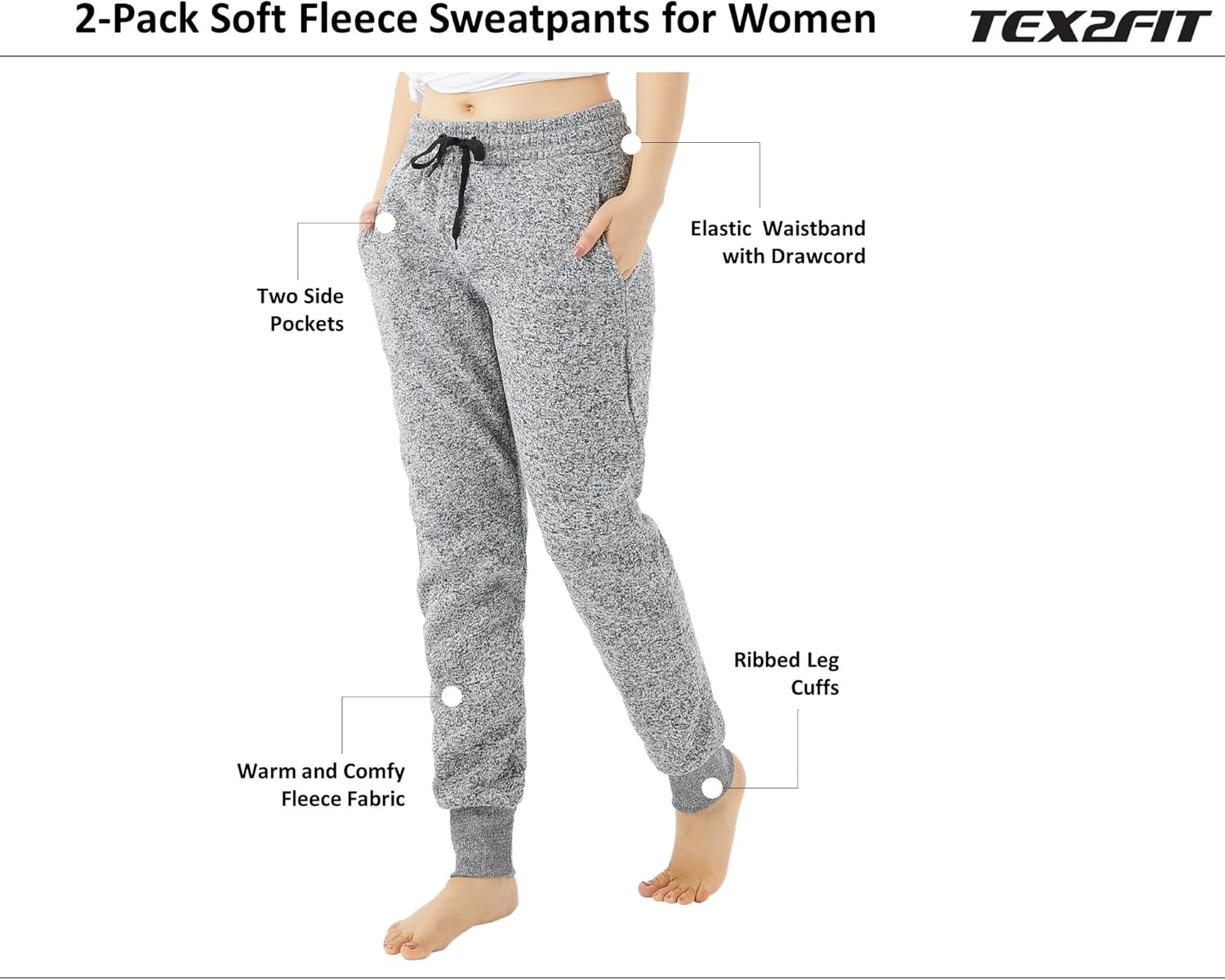 TEX2FIT 2-Pack Joggers for Women with Side Pockets…
