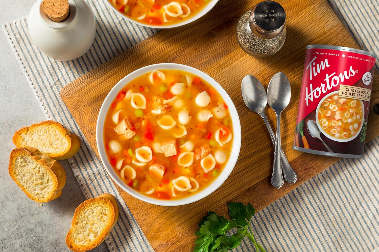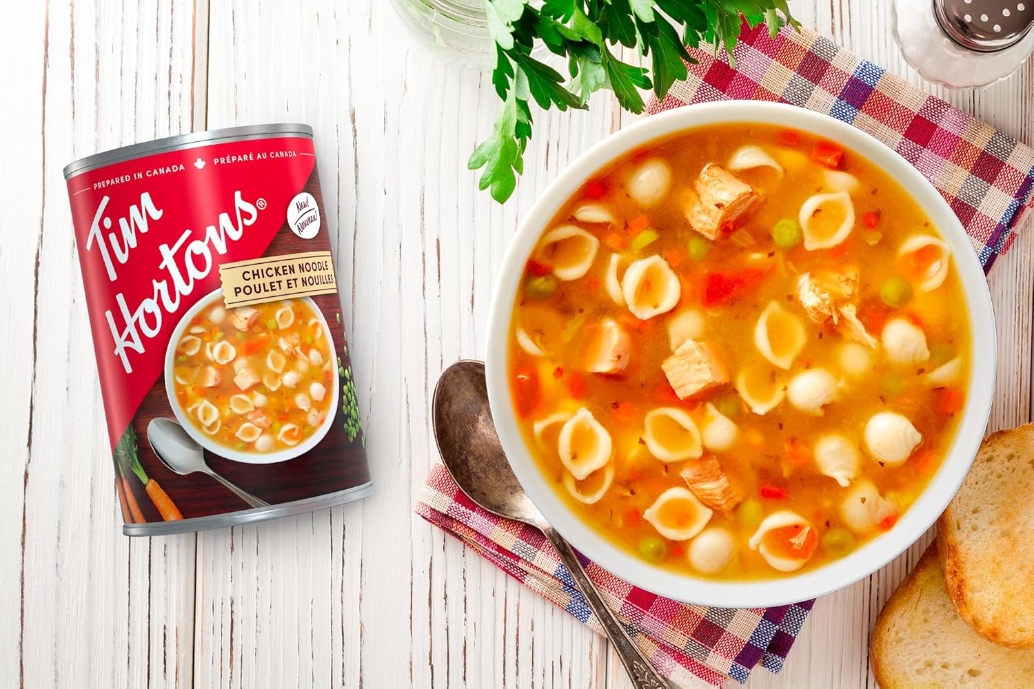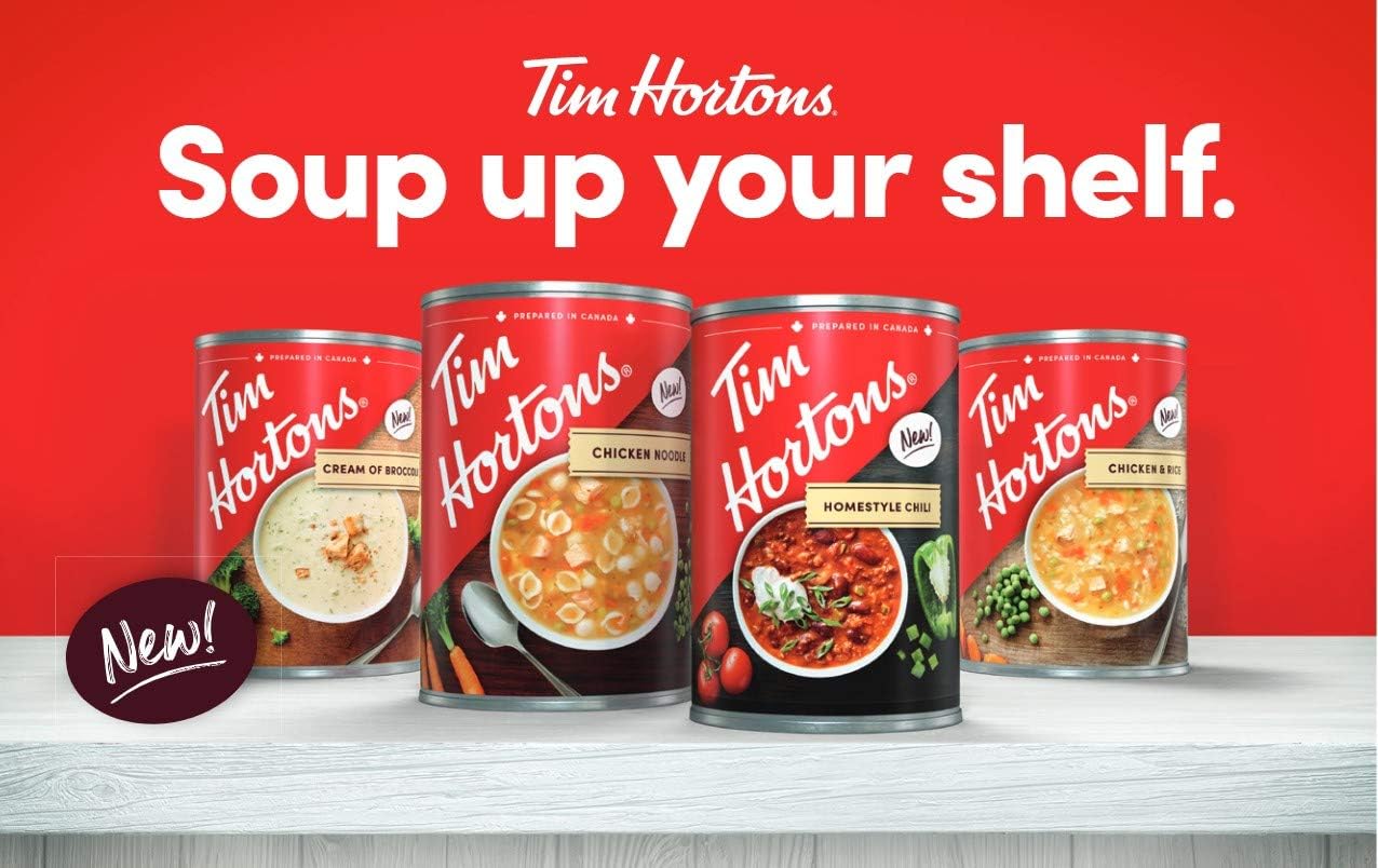 Tim Hortons is committed to delivering the flavours you love and the quality you’ve come to expect. Known for selecting the finest ingredients for their signature Collection of delicious soups and chili, for a hearty and satisfying experience every time. Tim Hortons soups and chili are prepared in Canada and available in cans, ready to serve whatever craving. 540ml can of chicken noodle soup Nourishing and wholesome Enjoy the taste of time in the comfort of your own home Prepared in Canada Ready-to-serve Low fat Low in saturated fat Low cholesterol Good source of Vitamin A