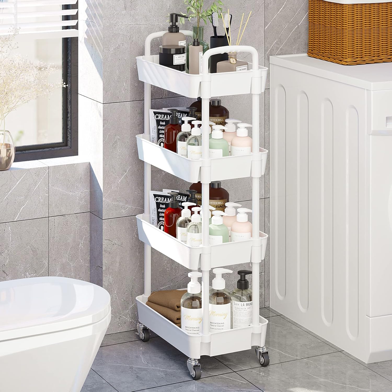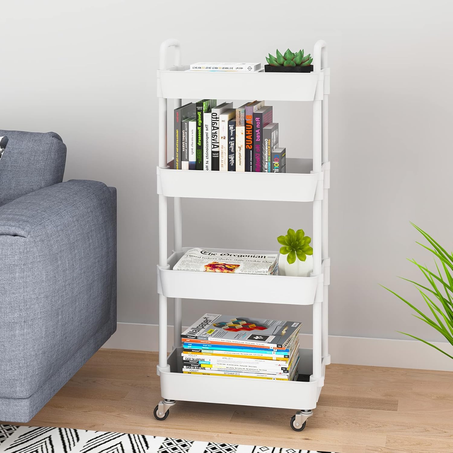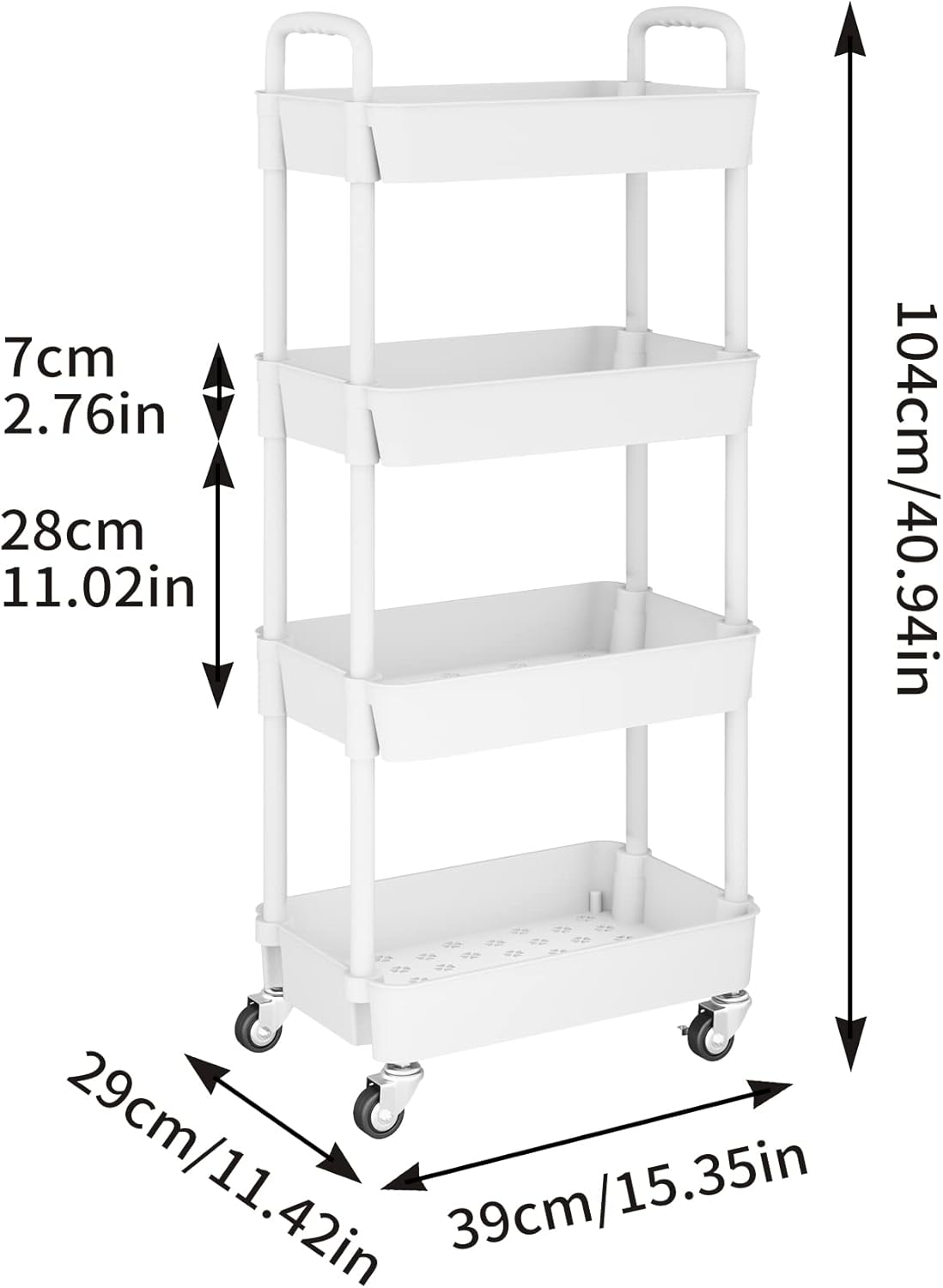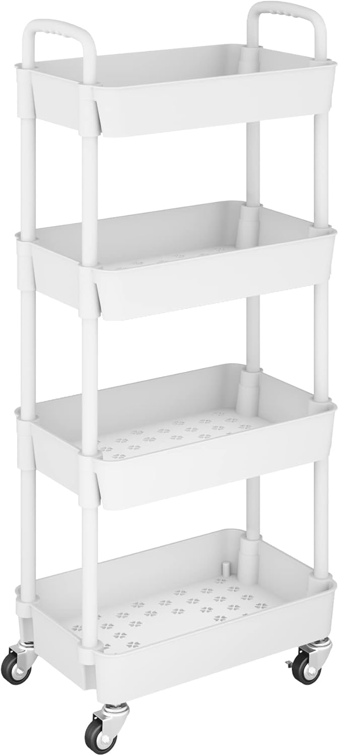 【Large storage】This rolling cart has 4 large-capacity storage baskets with a size of 39*29*7cm (15.35*11.42*2.76in), which can provide you with sufficient space to store your daily necessities. It can improve space utilization.