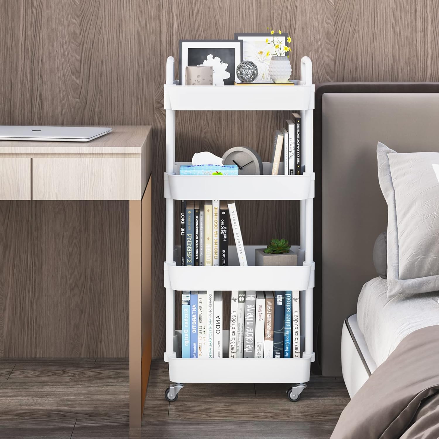 You can put your favorite books and easy-to-forget small items on the trolley.