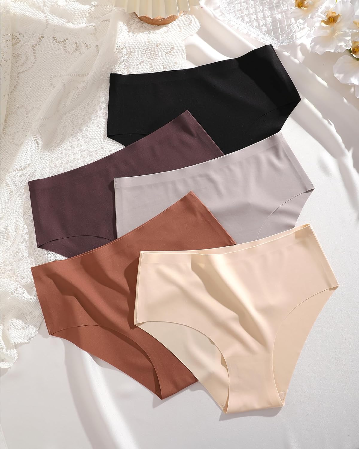Extremely comfortable wearing experience: If you are struggle to find cut comfy seamless underwear then try this one, you don’t even feel them on besides being comfortable. Soft as a glove. Light as a feather. Achieve true seamless: Laser cut, no panty lines, no seams visible whether you wear a skirt or trousers.You won’t regret this purchase! Give yourself the gift of a fresh set of womens underwear that make you feel incredible in your cheeky underwear! High-quality fabrics: Made from 63% polyamide and 37% elastane combination, these no show panties stretch exceptionally well and are very comfortable and soft to wear even when pregnant! Suitable for a variety of event scenarios: With the purchase of this underwear women pack, you get five pairs of seamless underwear for women to “invisibly” accompany you during work, sports, holidays, hanging out and many more scenarios!