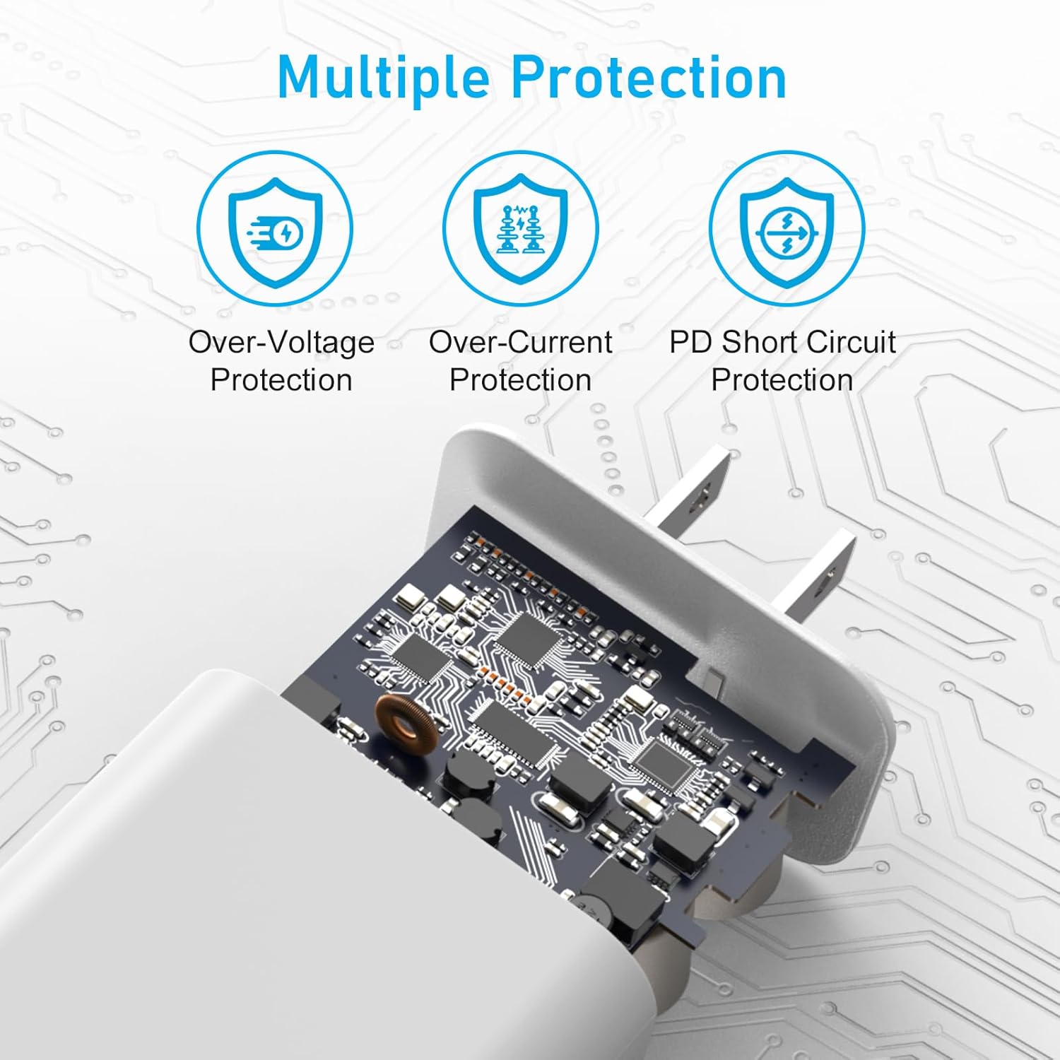 Built-in advanced USB Power Delivery 3.0 chip, and loaded with 20W of output power to give your Pad pro 2020/2018 12.9/11 a full-speed charge.The Power Delivery Wall Charger for Phone owns a built-in multi-protection system, avoiding over-voltage,over-charge,over-heat, etc.