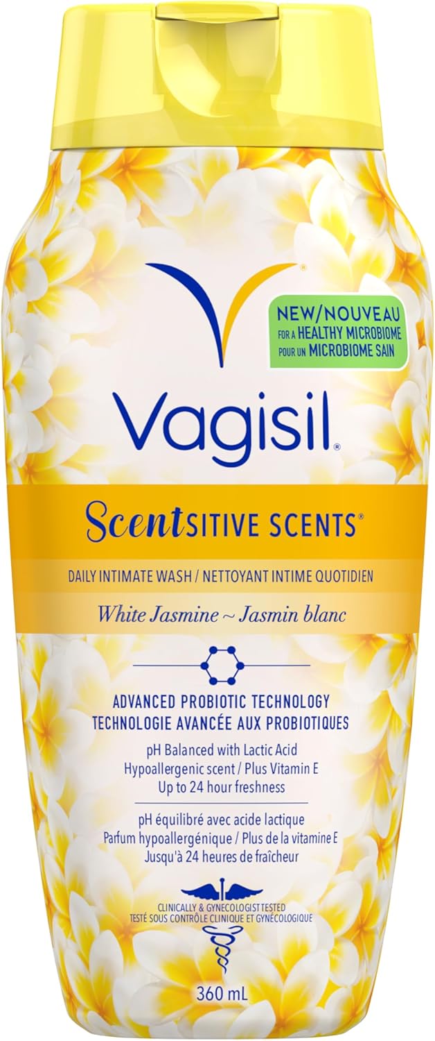 Includes 1 bottle (360 mL) of Vagisil White Jasmine Scentsitive Scents daily intimate vaginal wash