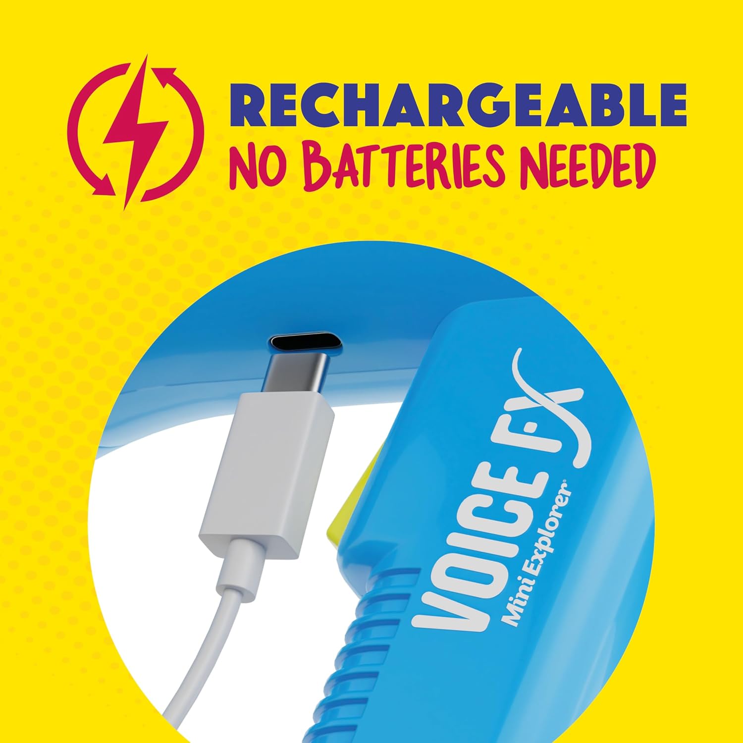Charge & Play: Say goodbye to the hassle of buying batteries! With the VoiceFX, simply plug in and recharge using the included USB cable for endless hours of fun.