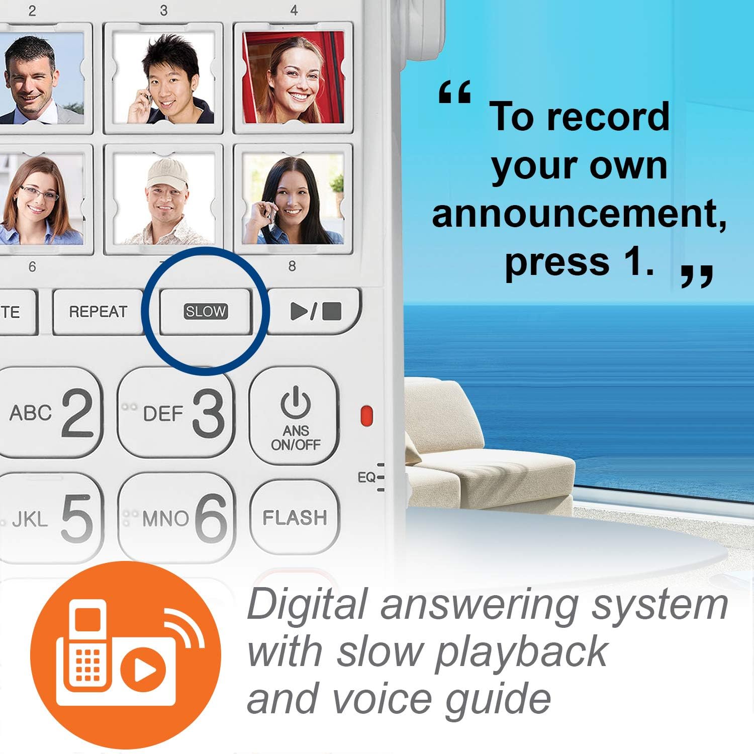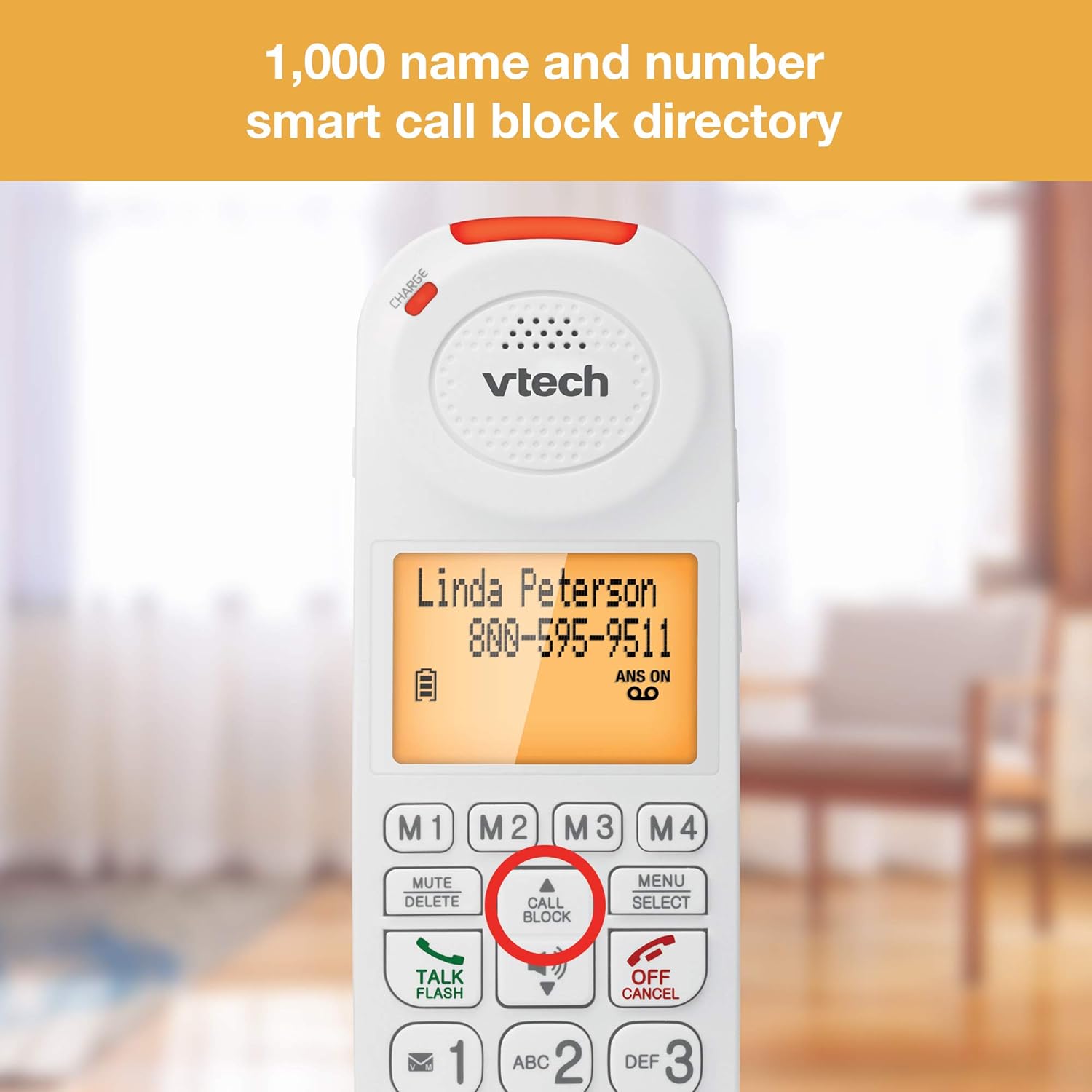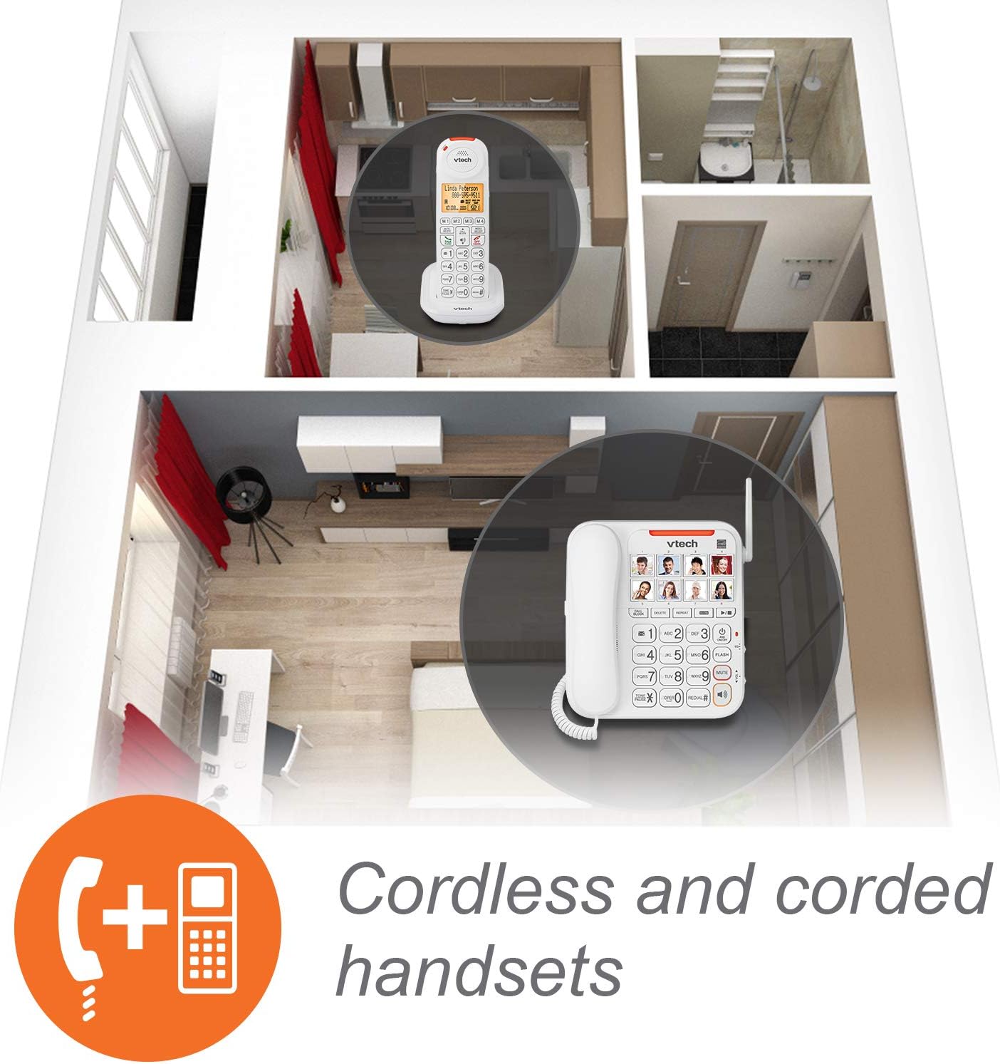Designed for seniors or the hearing impaired, the VTech CareLine SN5147 Amplified Corded/ Cordless Senior Phone System with 90dB Extra-Loud Visual Ringer, Big Buttons & Large Display comes with features to make hearing and dialing calls easier than ever. With big buttons, large displays, and a full-duplex speakerphone on each device, this senior-friendly telephone system takes the guesswork out of dialing calls. Attach a photo to each of the four photo speed dial buttons on the Photo Dial handset and call frequently dialed phone numbers with one touch for quick access to friends and family. Increase the volume of incoming sound on this VTech CareLine SN5147 Amplified Corded/ Cordless Senior Phone System with 90dB Extra-Loud Visual Ringer, Big Buttons & Large Display by up to 50 decibels, making conversations easier to hear and understand. You can say goodbye to unwanted calls with this amplified telephone thanks to smart call blocker. Robocalls on your landline are automatically blocked from ever ringing through—even the first time. You can also permanently blacklist up to 1,000 numbers with one touch.