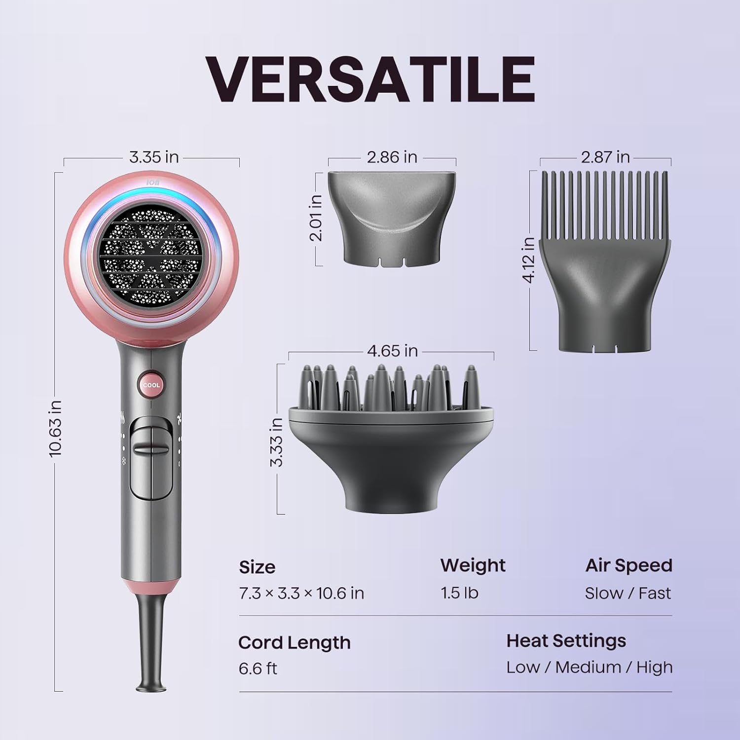 Ionic Frizz Reduction: Emits millions of ions to neutralize static electricity, instantly smooth flyaways, and lock in shine for hair that feels sleek, looks glossy, and stays effortlessly polished