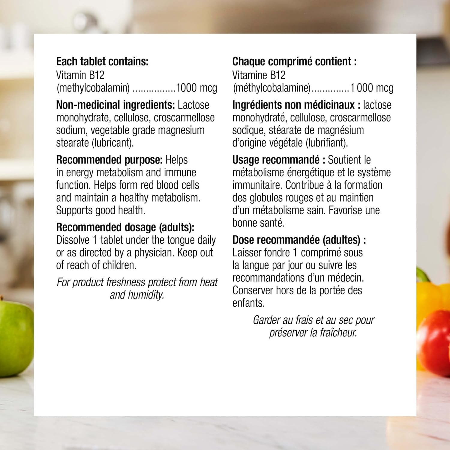 Vitamin B12 methylcobalamin from Webber Naturals is a one-per-day, higher potency, sublingual tablet providing 1000 mcg of the proactive form of vitamin B12 to help prevent and correct vitamin B12 deficiency. These fast-acting, Quick-Dissolve tablets support energy metabolism, immune function, and red blood cell formation, and are suitable for vegetarians.