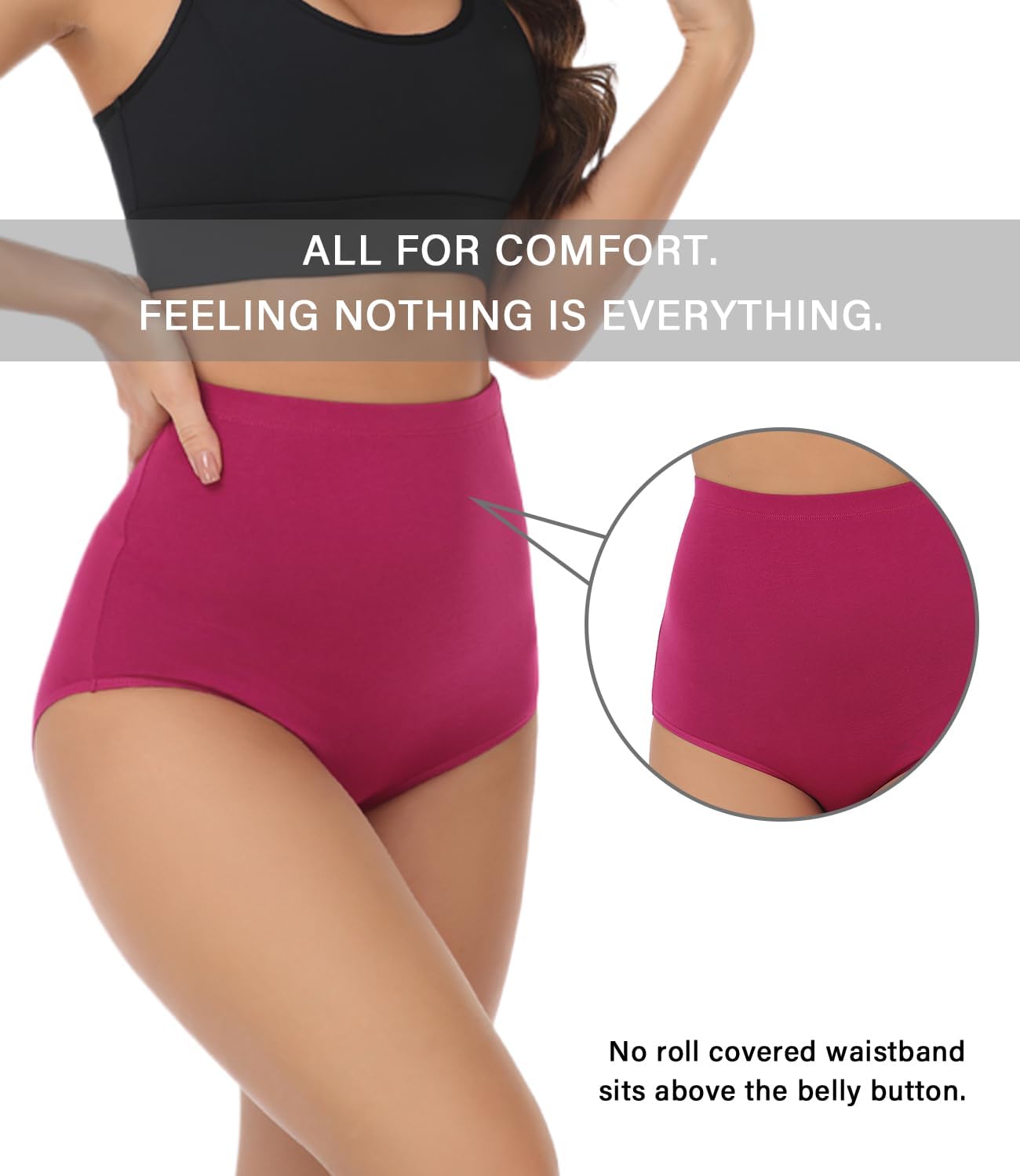 Truly high waisted cotton underwear for women comes with fabric covered waistband and no-binding leg openings. The high rise briefs sit above the belly button, hug you like a glove and offer all-day comfort.