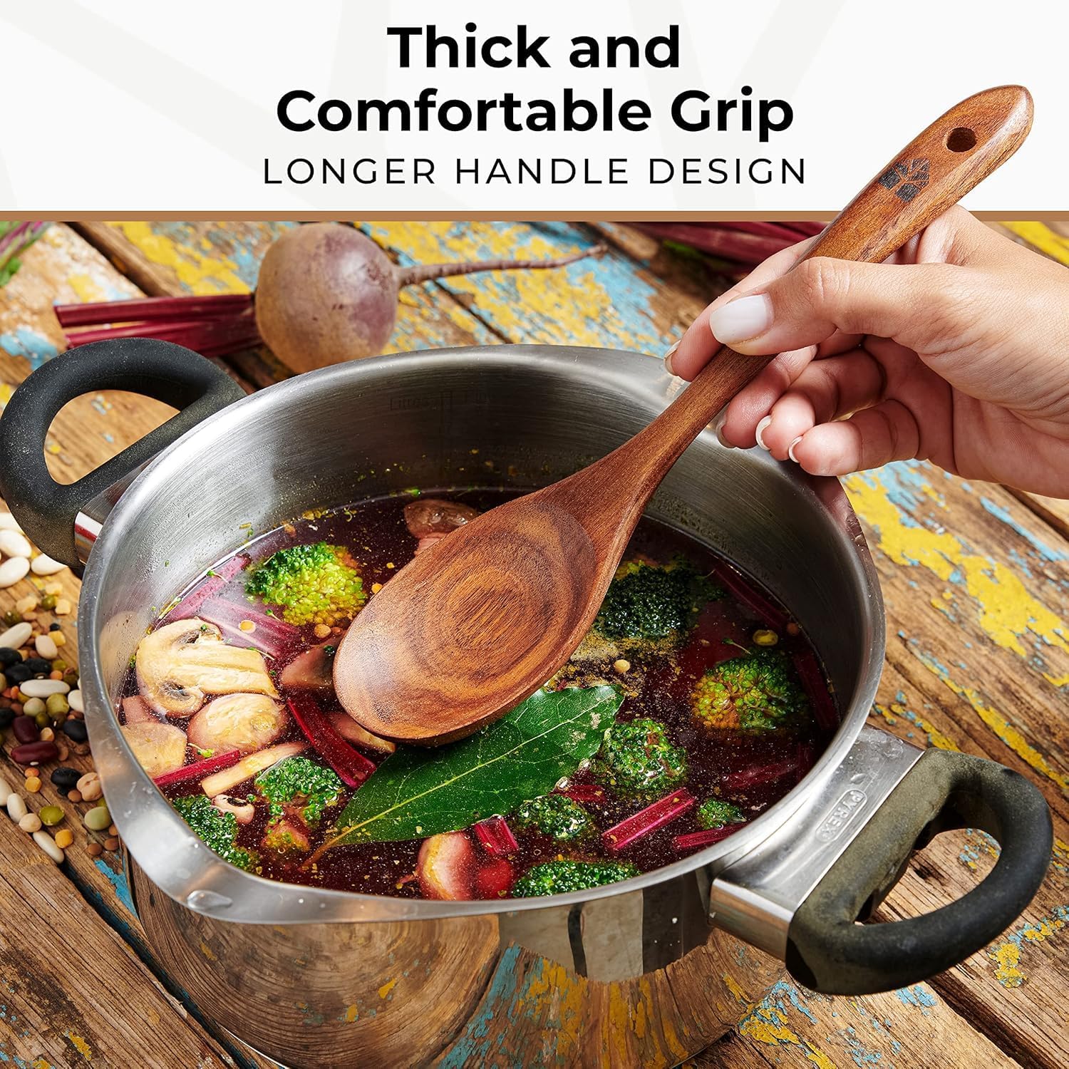 EASY TO CLEAN & ECO-FRIENDLY: Our wooden utensil sets are nonstick, easy to clean with warm or soapy water. This wooden utensils set is also completely biodegradble and decays fast than plastic ones. Definitely a great wooden kitchen utensils gift.