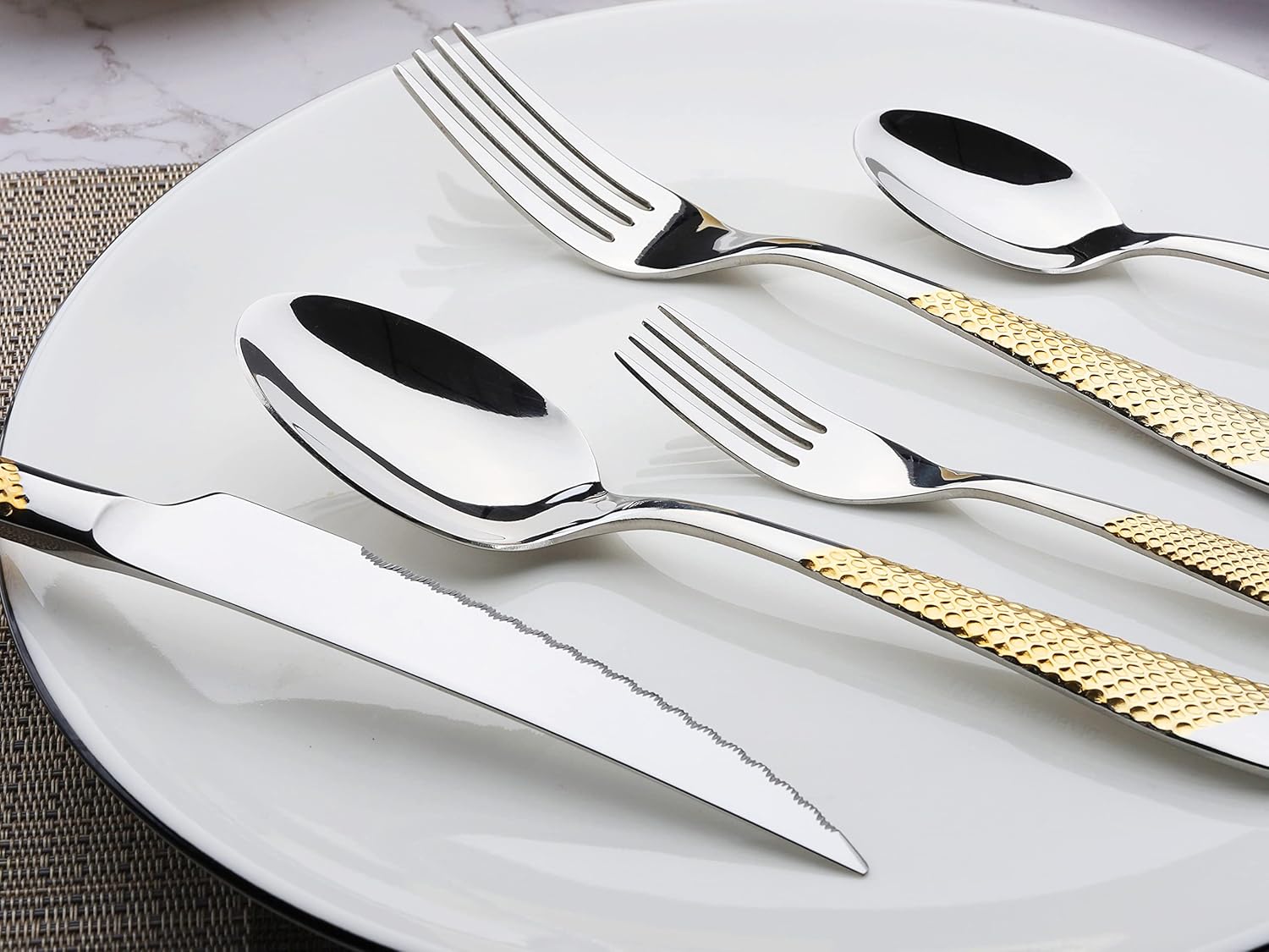 Set of 12 Cutlery: Elegantly designed set includes 12 sets of cutlery with knives, spoons, and forks