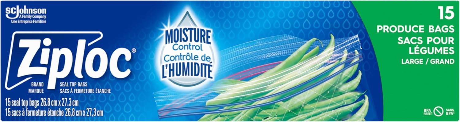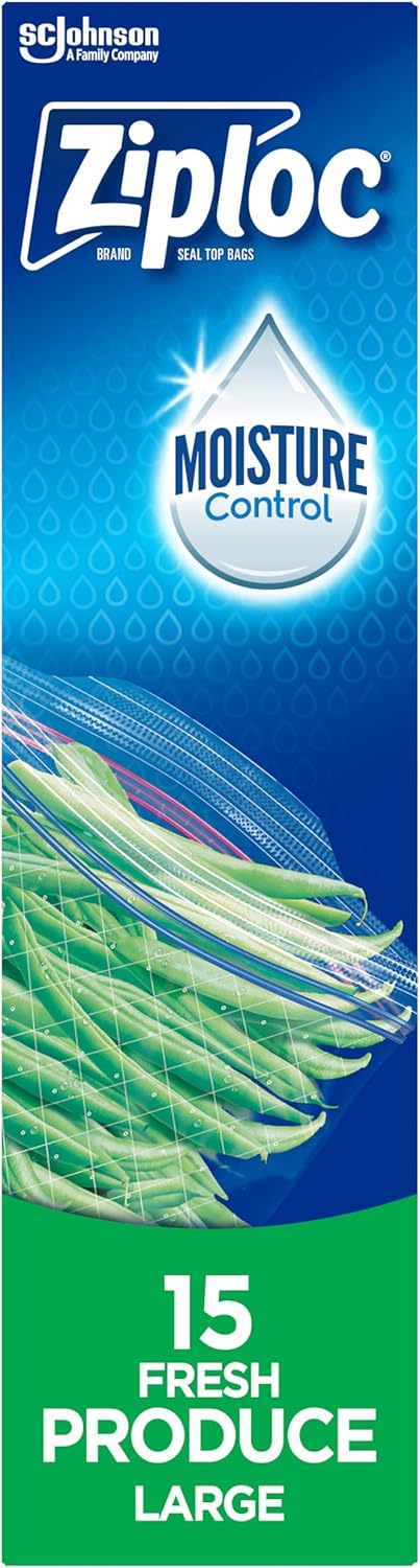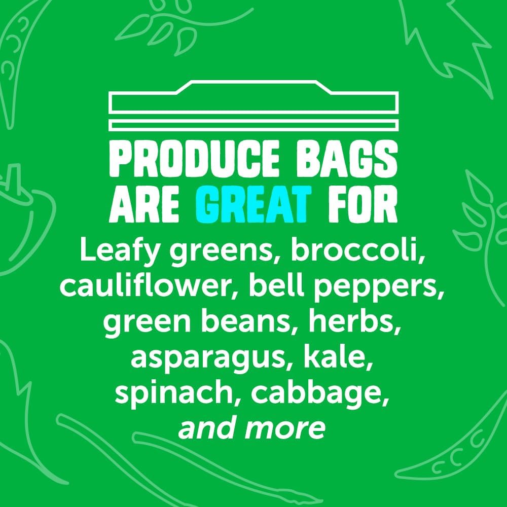 Ziploc brand Double Zipper Produce Bags help you keep your vegetables fresh with special vents that release the right amount of moisture. Place unwashed and uncut produce in Ziploc brand Double Zipper Produce Bags as soon as you get home from the store. Fill each bag at least half full then lock the seal.