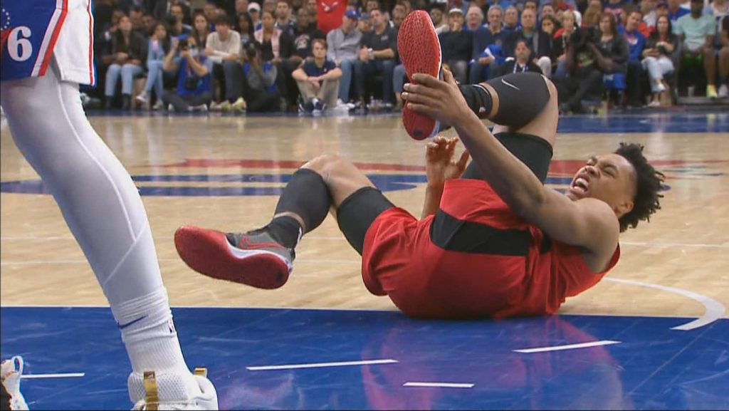 Barnes was on pace for a triple double, with 15 points, 10 rebounds and eight assists, in Toronto’s 131-111 loss in Game 1 when Sixers centre Joel Embiid stepped on his ankle, sending him crashing to the floor in agony with about nine minutes to play.