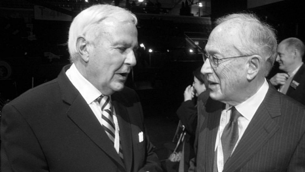 After leaving politics, Smith rarely appeared at political events. In fact, I think the last event of significance he attended was the farewell to McGuinty in January 2013 at the old Maple Leaf Gardens. I saw him sitting beside David Peterson, his one-time rival for the party leadership, and I couldn’t resist snapping a picture of the two them in conversation. At this point, their rivalry was nearly four decades behind them. To see them conversing — as it happened, for what would be the last time — was a nice moment.