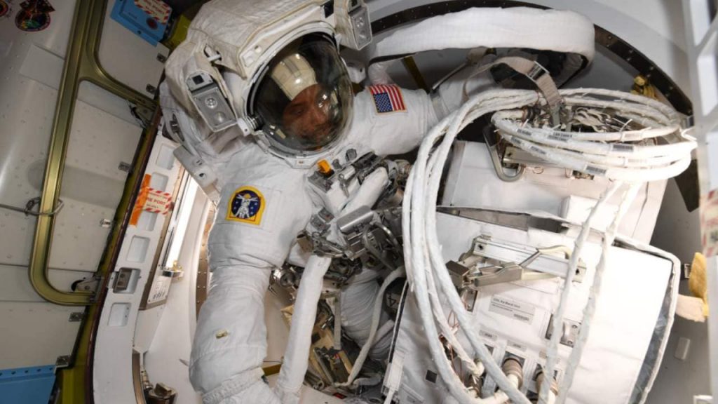 NASA astronaut Victor Glover dons his spacesuit and gets ready to exit the ISS for a spacewalk. Image credit: Twitter @Astro_Jessica