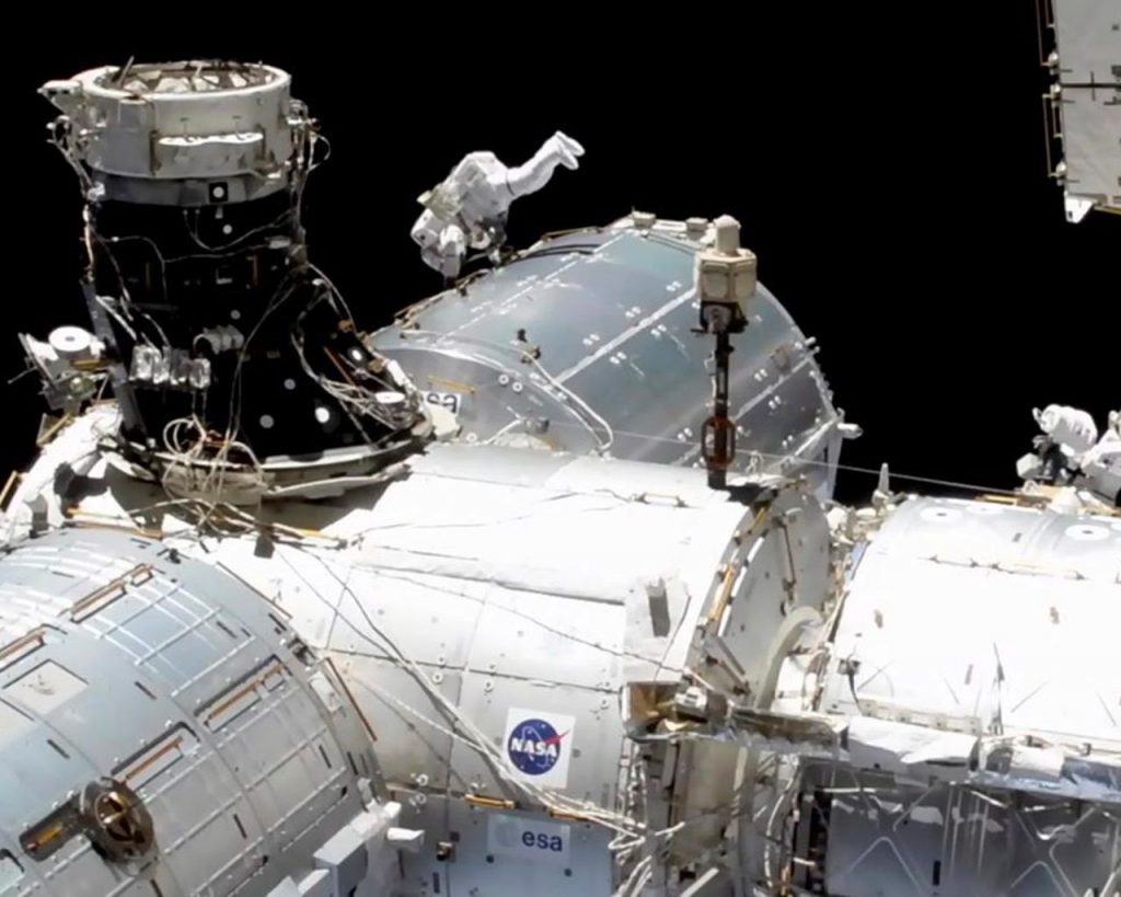 CAPE CANAVERAL, Fla. – Spacewalking astronauts installed a high-speed data link outside the International Space Station’s European lab on Wednesday and tackled other improvements.