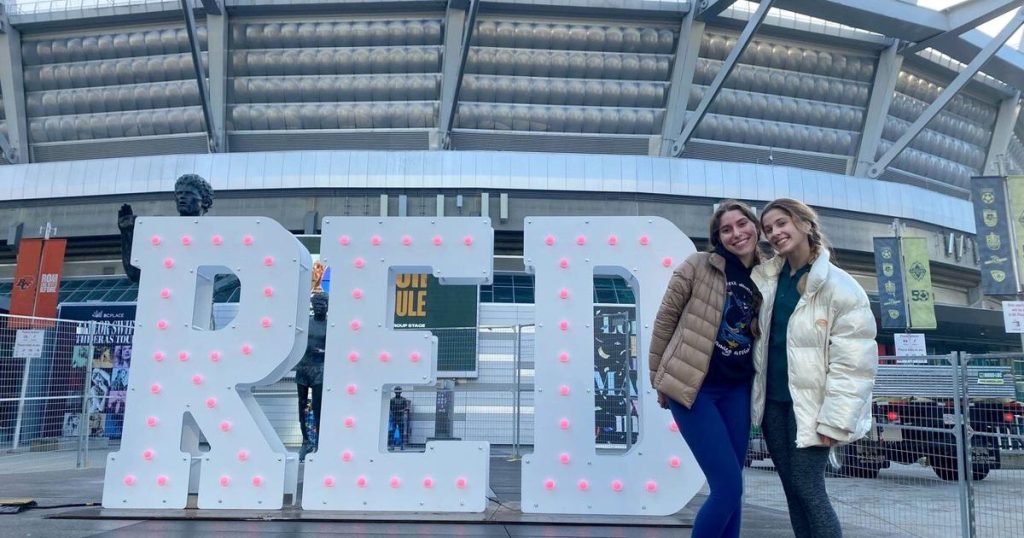 Fans posed for photos in front of Swift-themed decorations on the stadium grounds, including posters and large letters RED, referring to the title of the superstar’s fourth studio album.