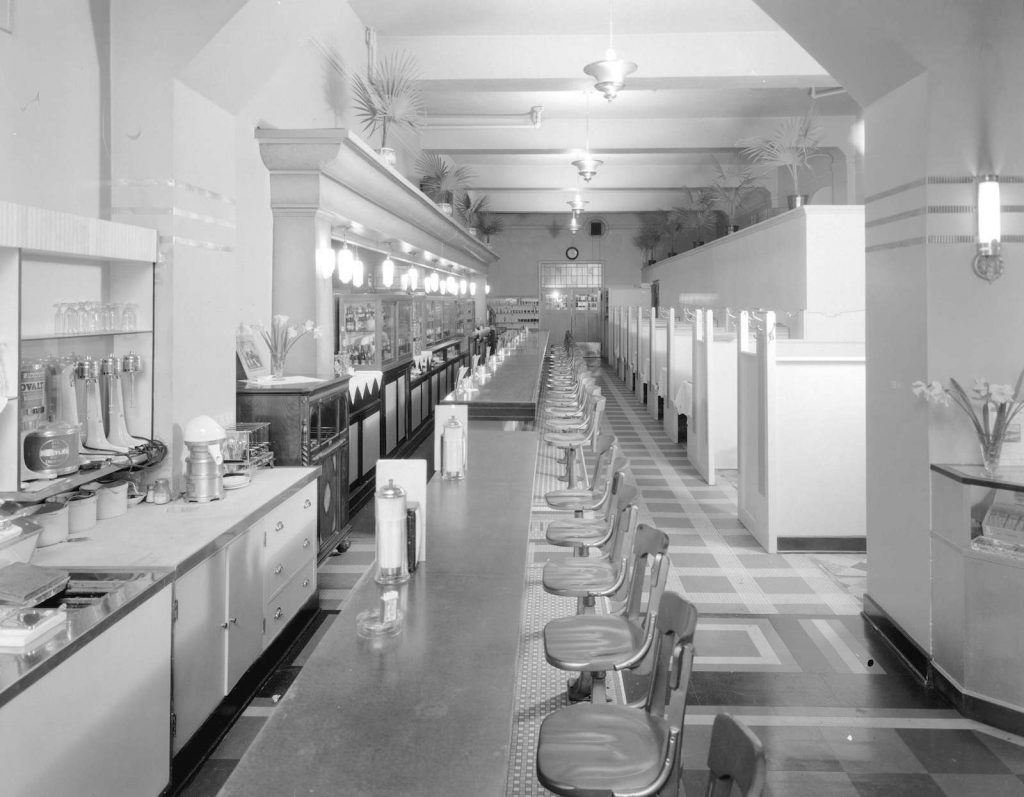 The Hollywood became the Good Eats Cafe in 1949, its lunch counter demolished and converted to retail at some point in the second half of the 20th century. The whole of the space has seen a retail/restaurant split ever since (the same that saw the highly trafficked American Apparel (now Brandy Melville) and Cafe Crepe pairing of the 2000s.