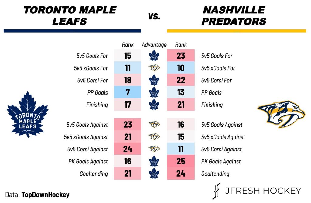 Head-to-Head Stats: Maple Leafs vs. Predators