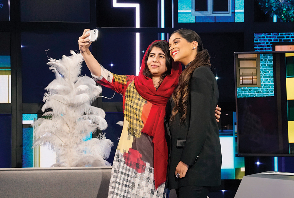 Lilly Singh (right, with Malala Yousafzai) launched “A Little Late” in September 2019.