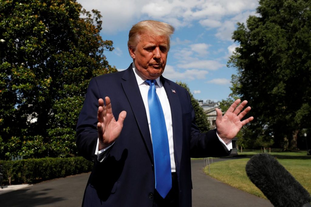 U.S. President Donald Trump speaks to the media on the South Lawn of the White House on July 11, 2020.