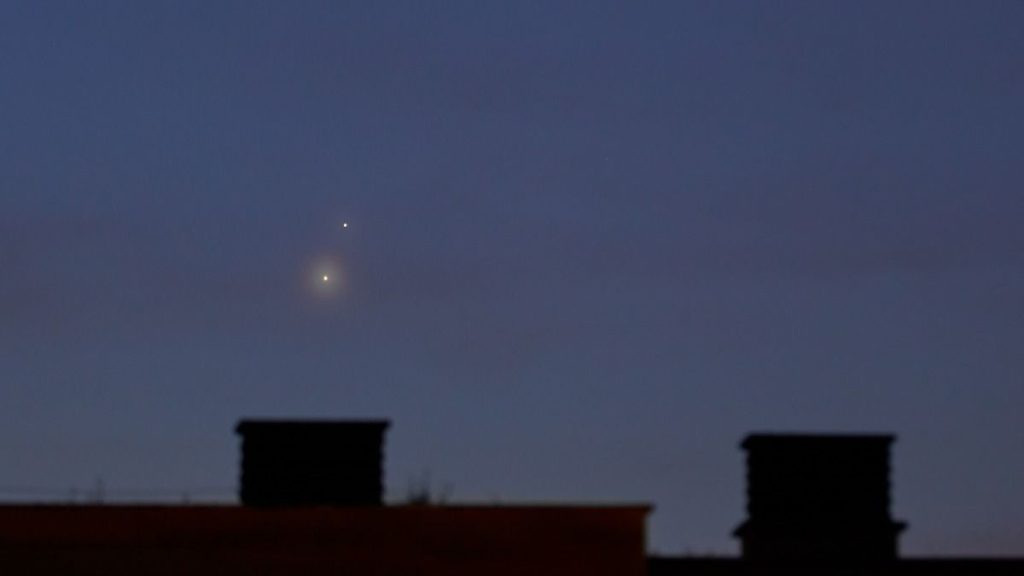 Venus and Jupiter shone together between the clouds in the image taken by Gianluca Masi, who runs astronomical livestreams for the Virtual Telescope Project.