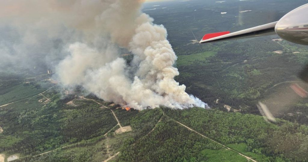 The fire is among about 60 burning in the province, 34 of which are classified as burning out of control.