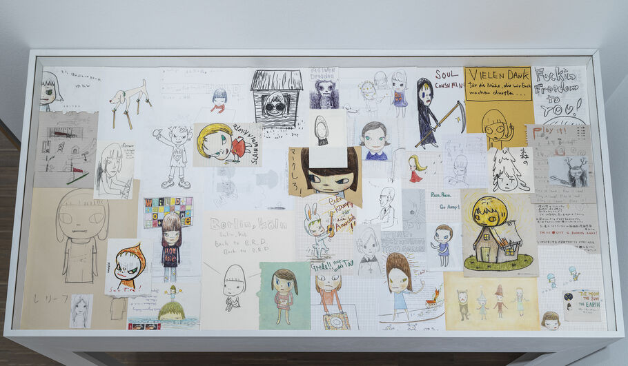 Yoshitomo Nara, installation view of Drawing Table in “All My Little Words” at Albertina Modern, 2023. © Yoshitomo Nara. Photo by Sandro E.E. Zanzinger. Courtesy of the artist and Pace Gallery.